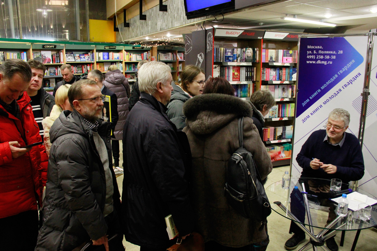 Презентация книг "Селфи с музой", "Три позы Казановы", "Времена жизни. Избранные стихи и очерки о поэзии", "Мысли на ветер. Афоризмы, цитаты, записные книжки", "Быть русским в России", "От империи лжи — к республике вранья", "Бездержавье", "В зоне риска" и др., вышедших в издательстве "Аргументы недели".